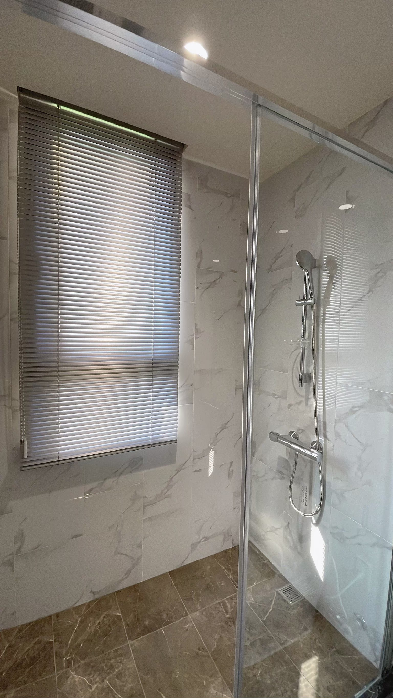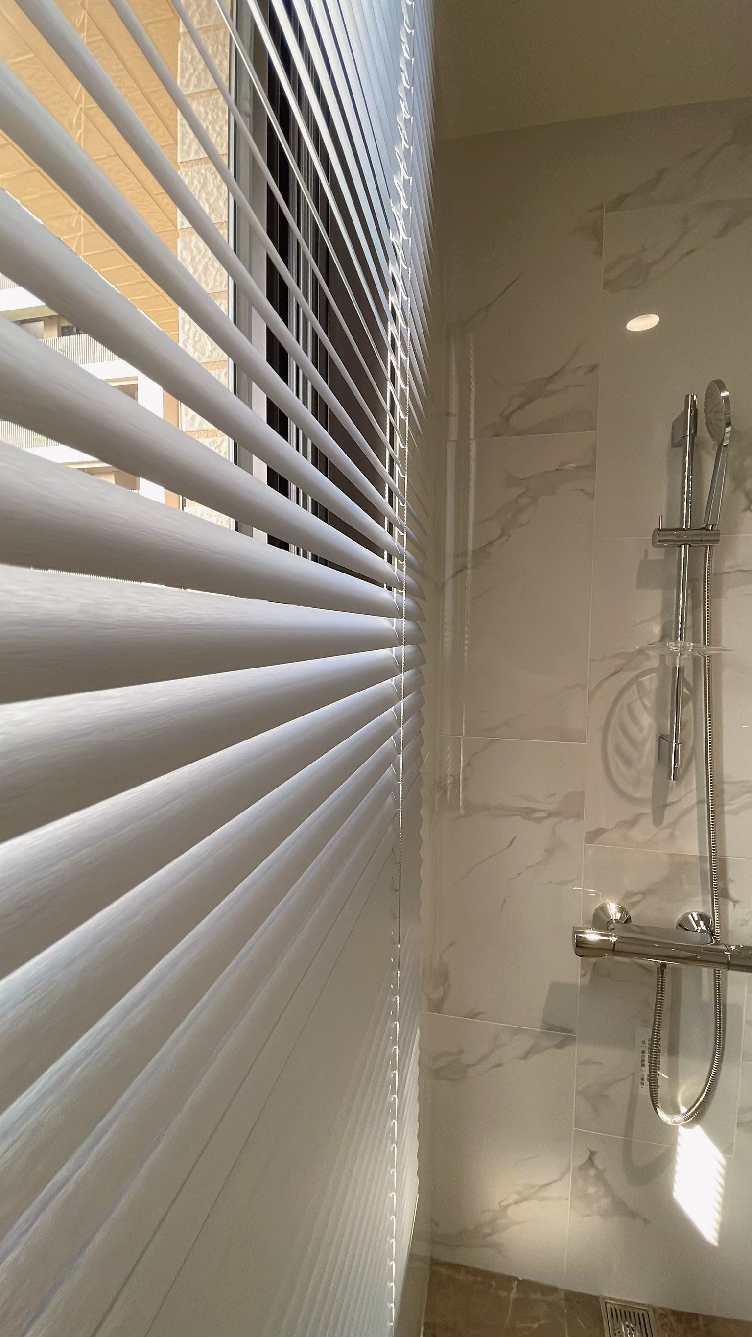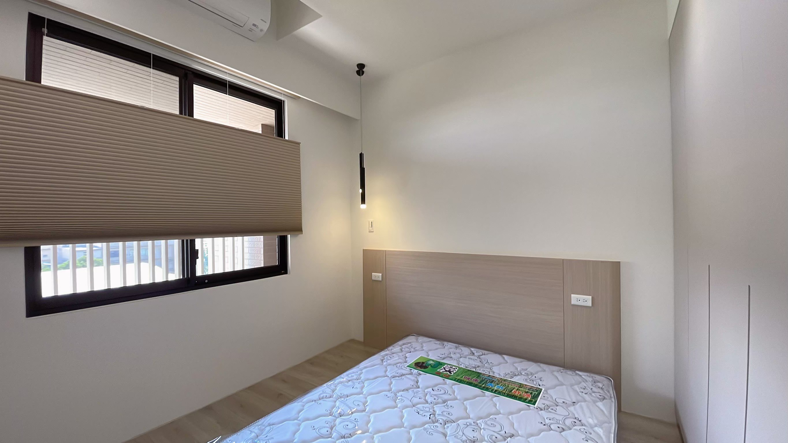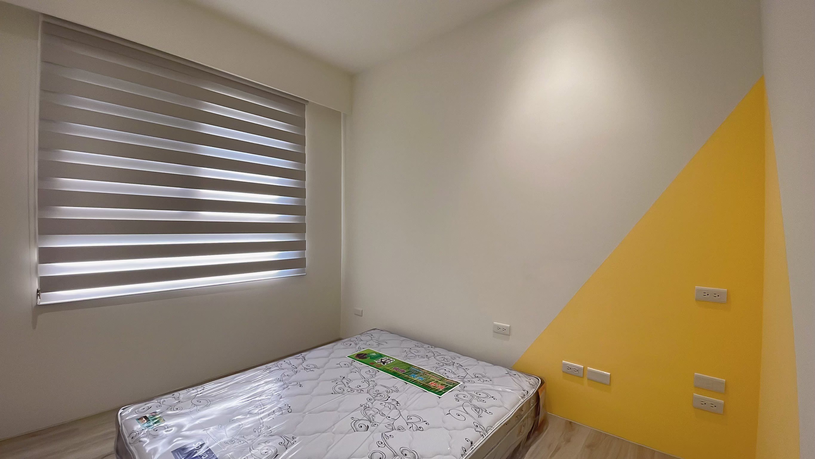 以簡約現代風格為基調,最大亮點是窗邊的半透光蜂巢簾。它能柔化日光,讓空間維持明亮卻不刺眼,同時有效保護隱私,不會讓室內一覽無遺。蜂巢結構具隔熱與節能效果,能提升居家舒適度,也減少冷氣耗能。搭配大片窗景,讓自然光隨時間變化,營造出溫潤又具層次的氛圍,使客廳在功能與美感之間取得平衡。