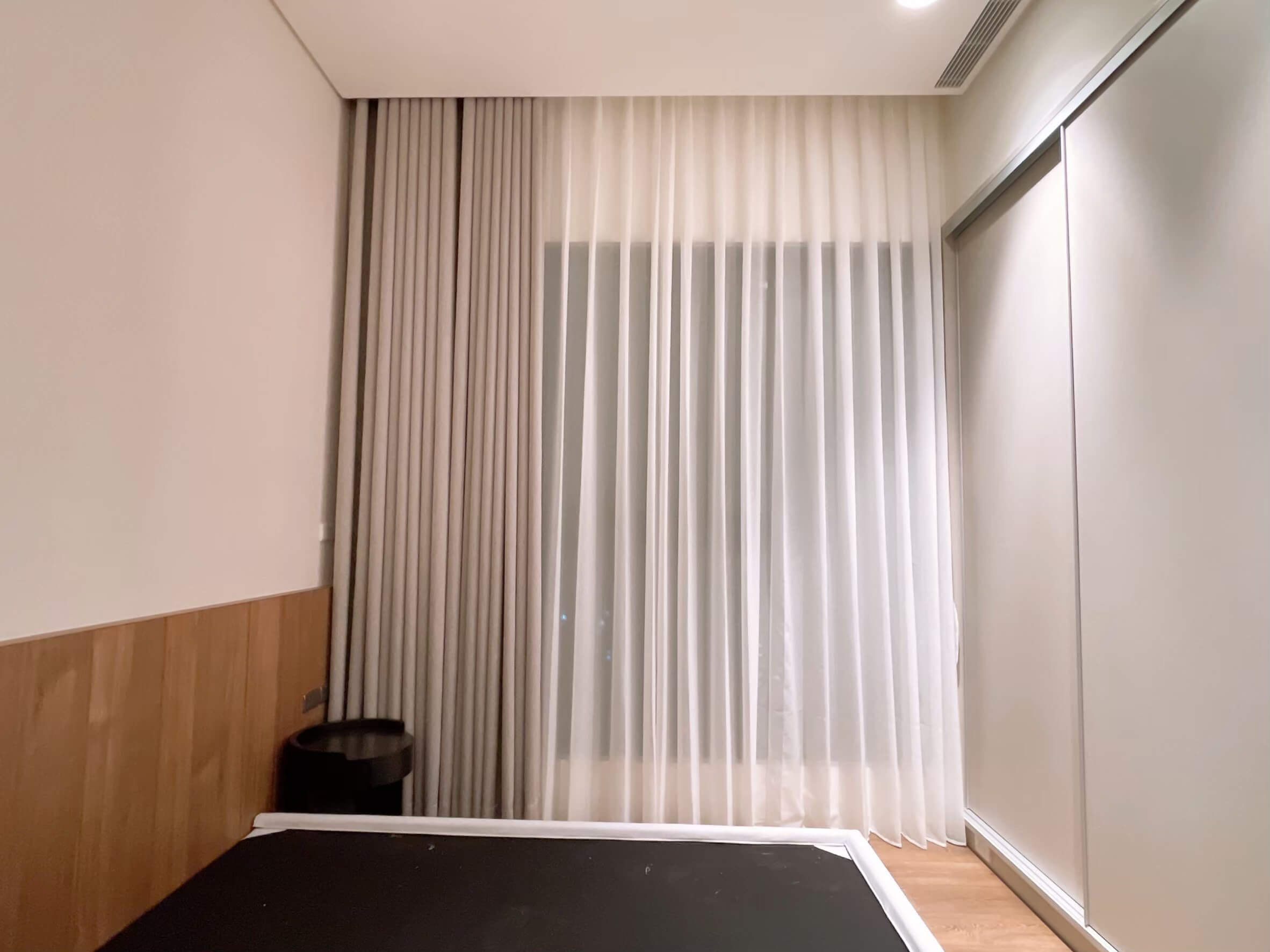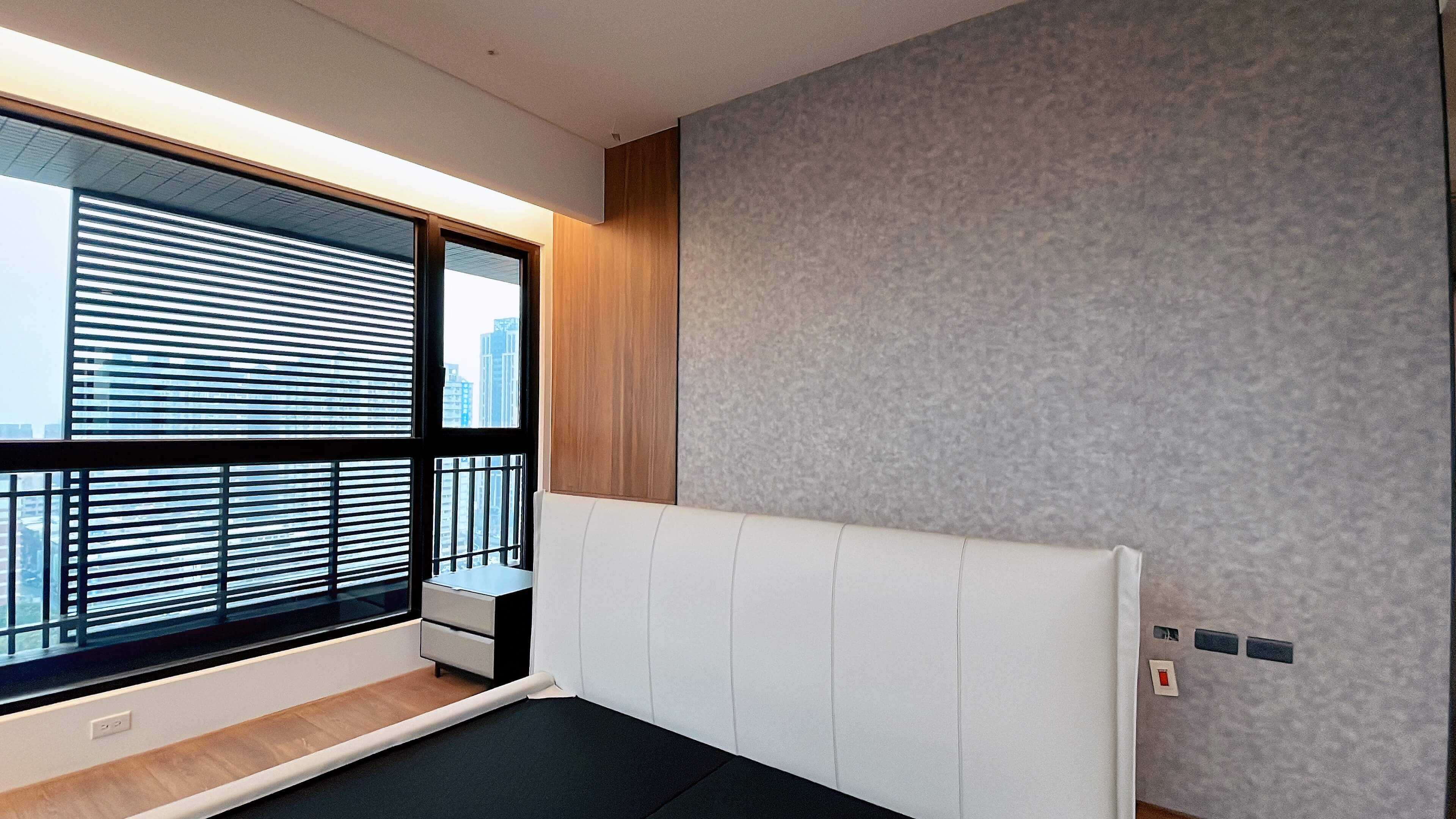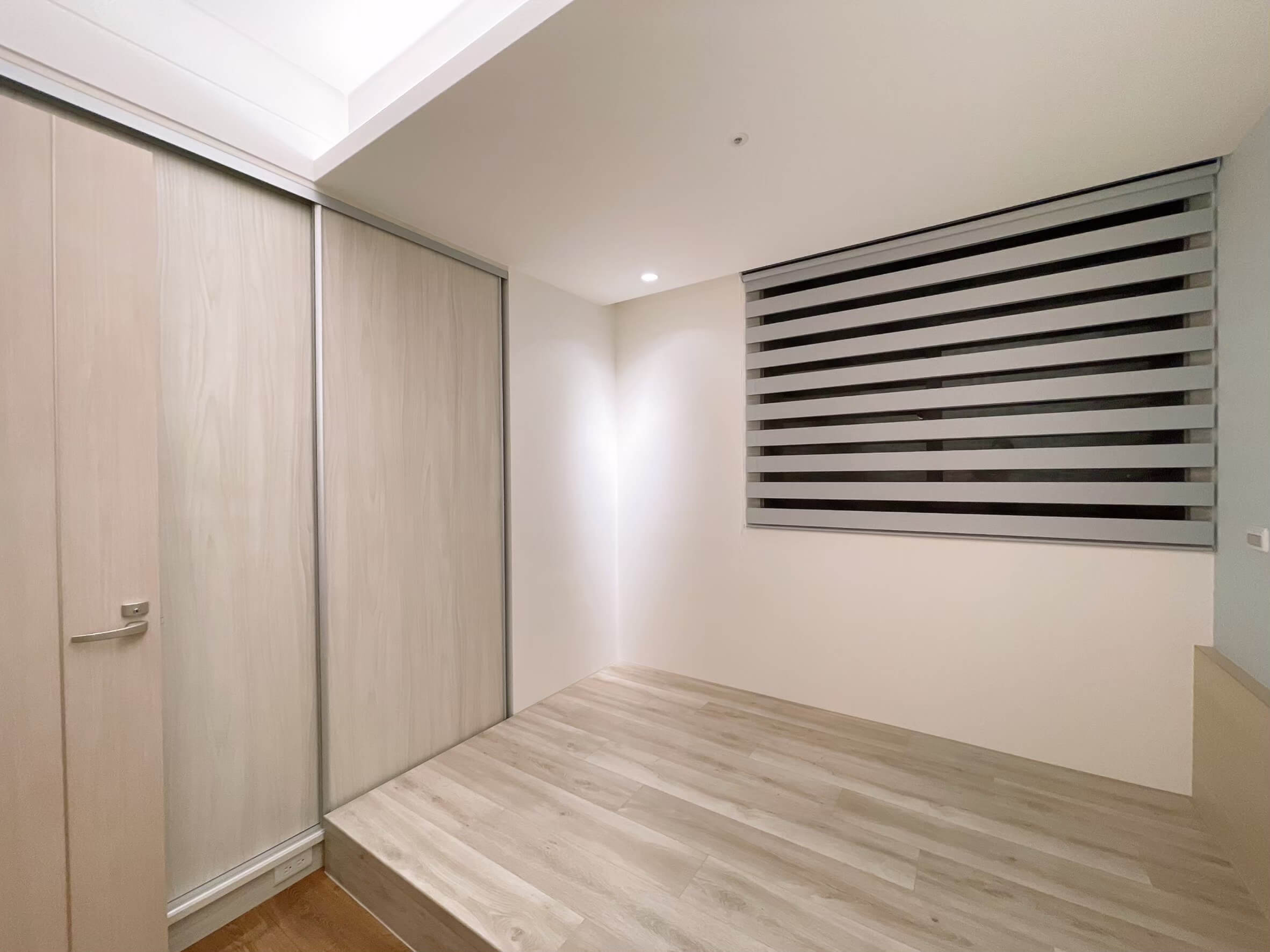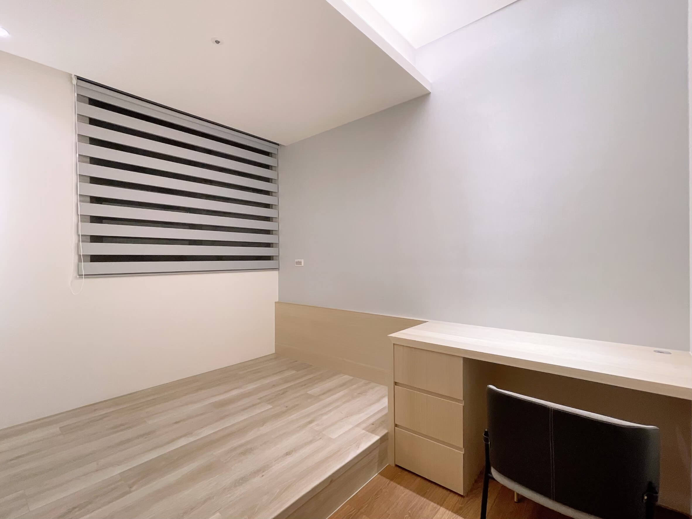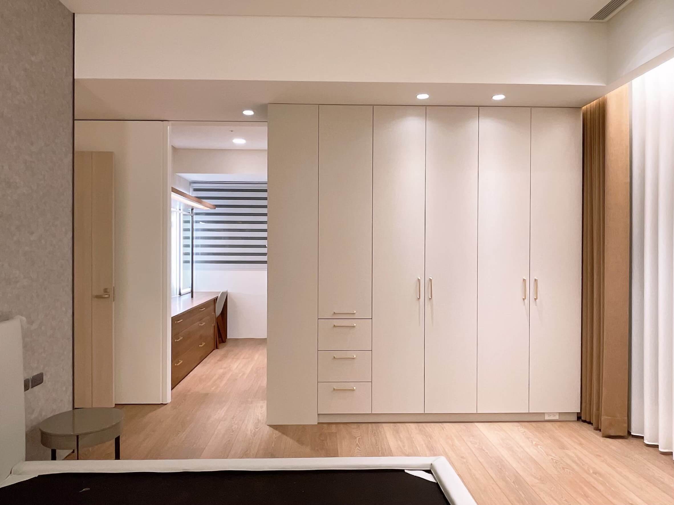 以落地窗搭配一整面白色布簾為視覺重點,窗簾以柔和的垂墜線條延伸整體高度感,使客廳顯得更開闊大器。布簾材質在光線照射下呈現溫潤質感,能靈活調節隱私與採光,白色更帶來清爽純淨的氛圍。與木質地板及溫暖燈光相互呼應,窗簾不僅是遮光工具,更是塑造空間層次與質感的重要元素,營造出雅緻而舒適的居家氛圍。