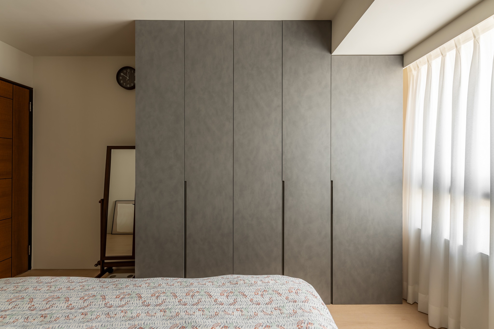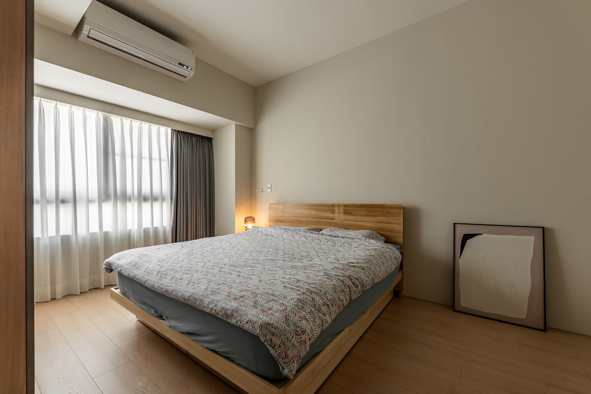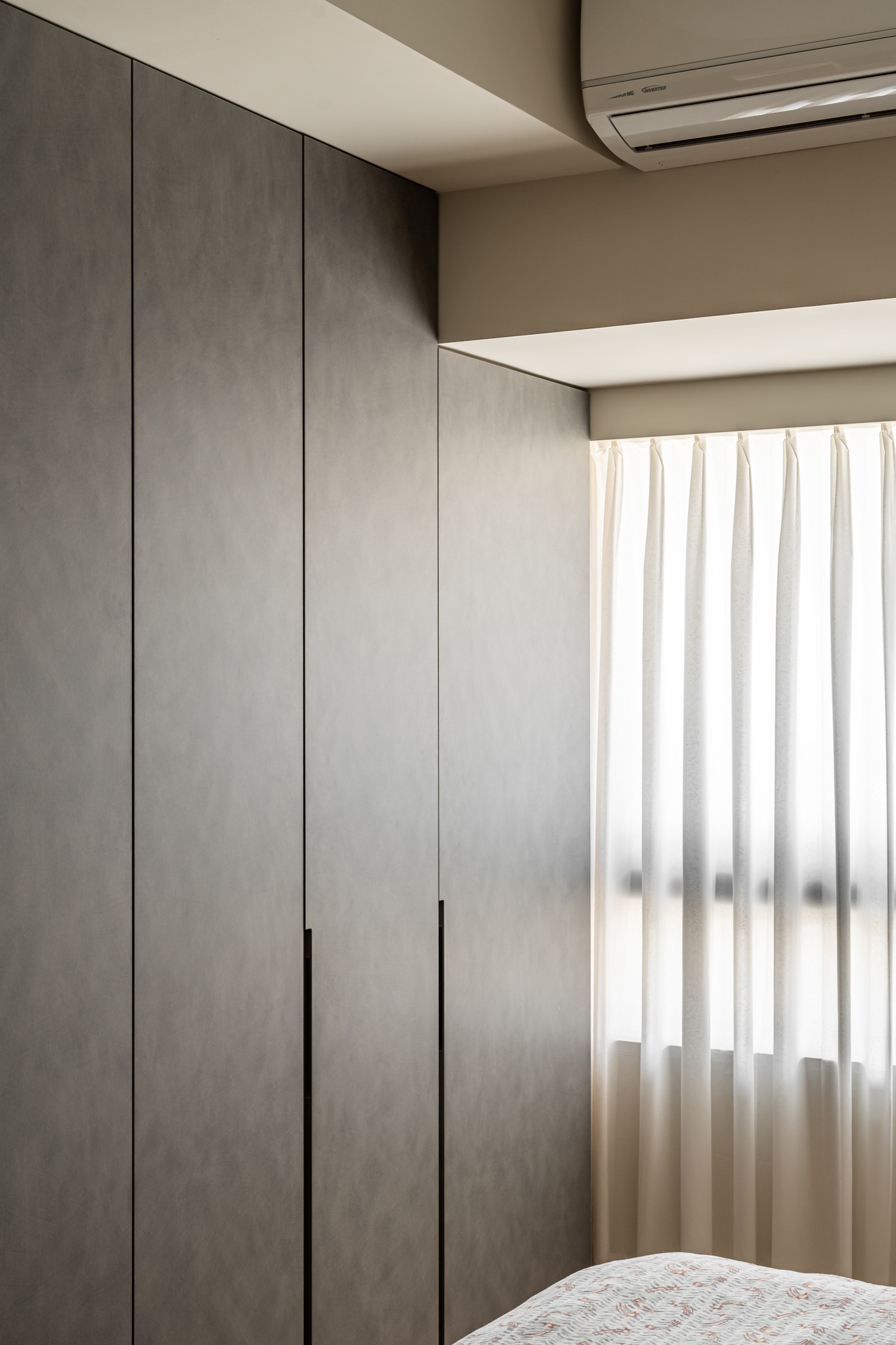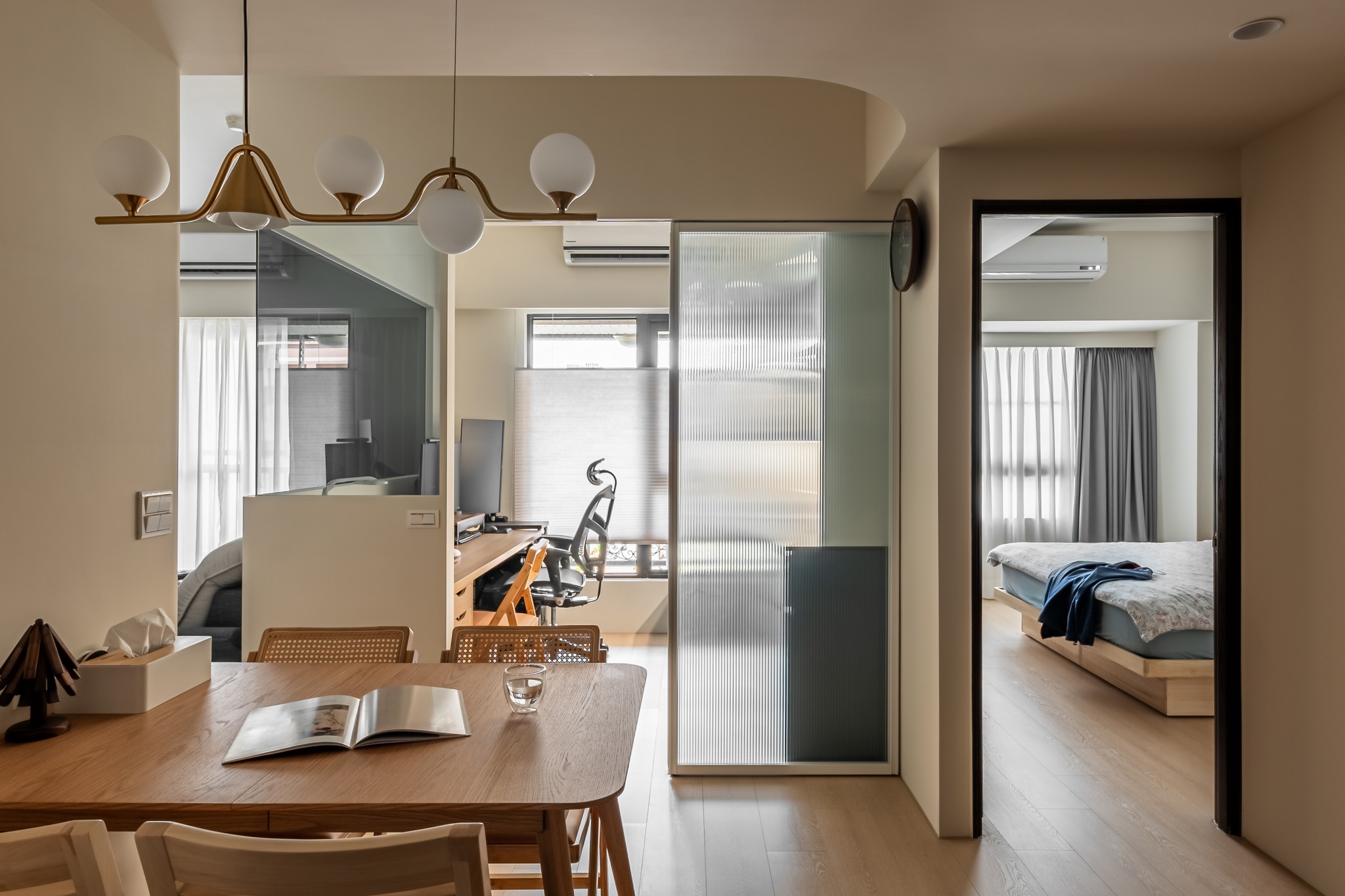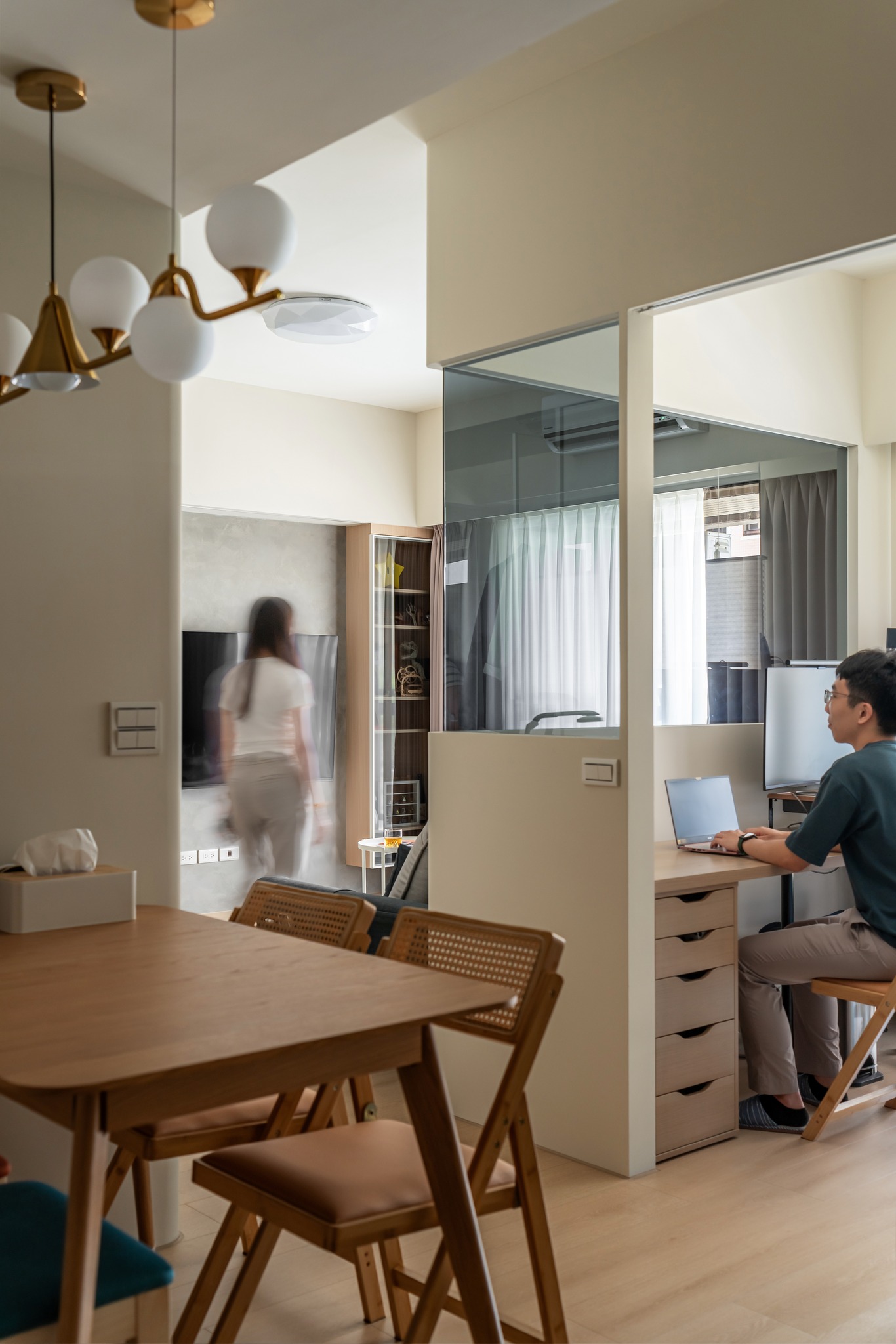 書房以半透光蜂巢簾作為窗飾,讓自然光能柔和進入,避免直射眩光影響閱讀與工作,同時保有良好的隱私。蜂巢結構具有隔熱效果,能讓空間在使用電腦或專心工作時更為舒適。淺灰色簾面與整體現代感的收納櫃、燈帶相呼應,讓書房既具專業氛圍,又維持簡潔與溫潤的質感。這樣的窗簾選擇特別適合需要長時間專注的工作環境。
