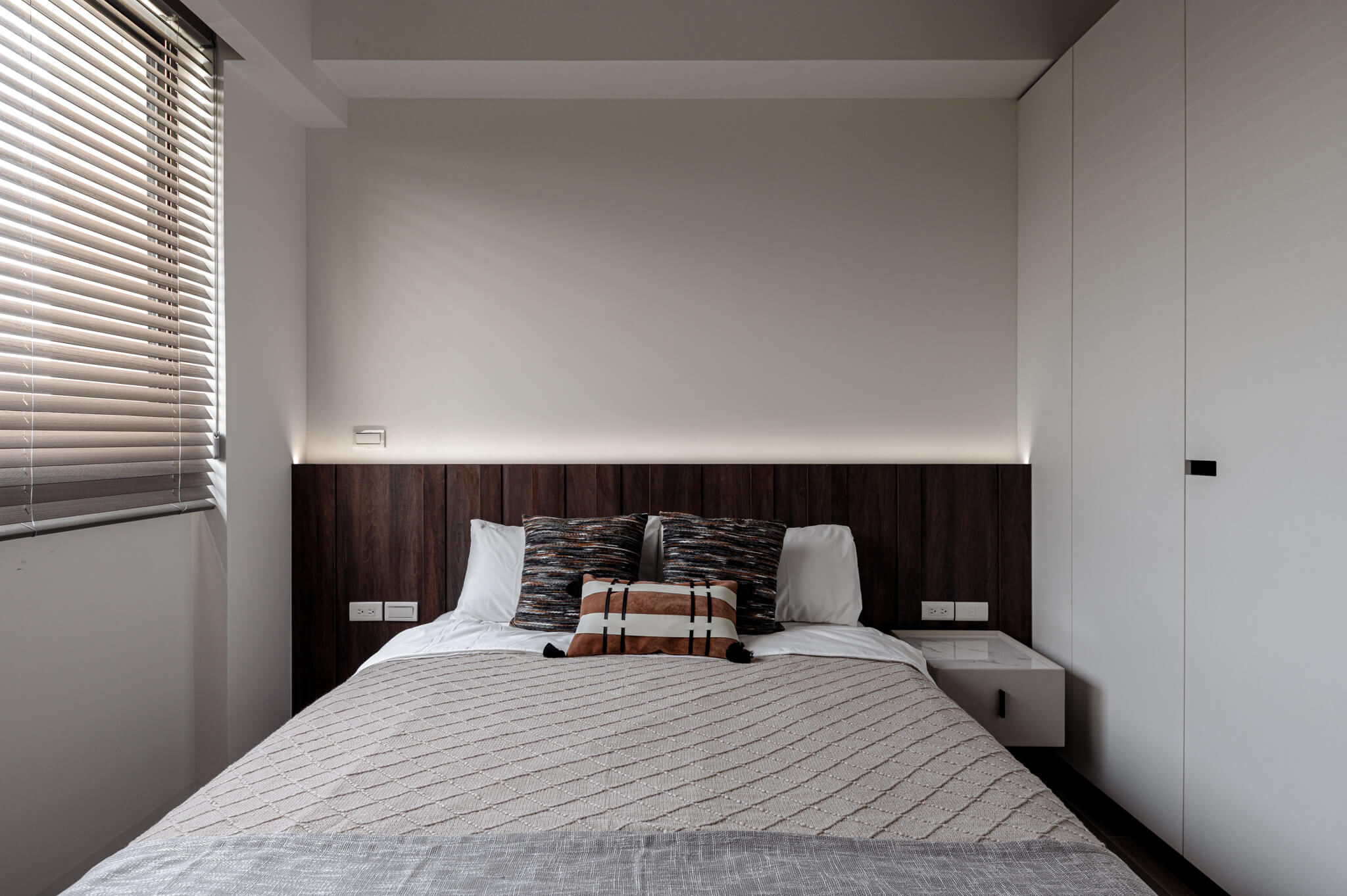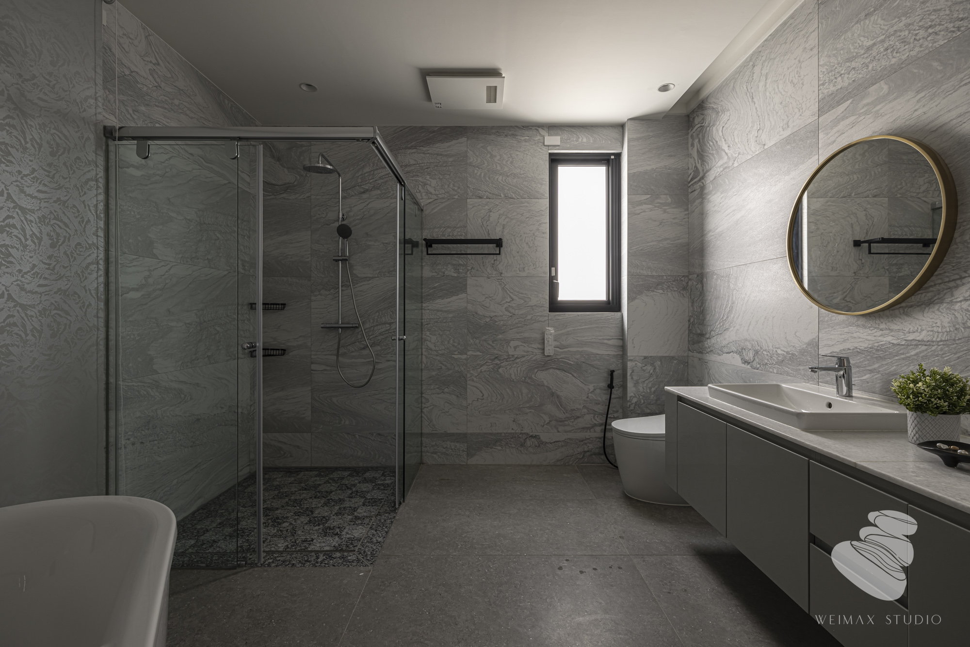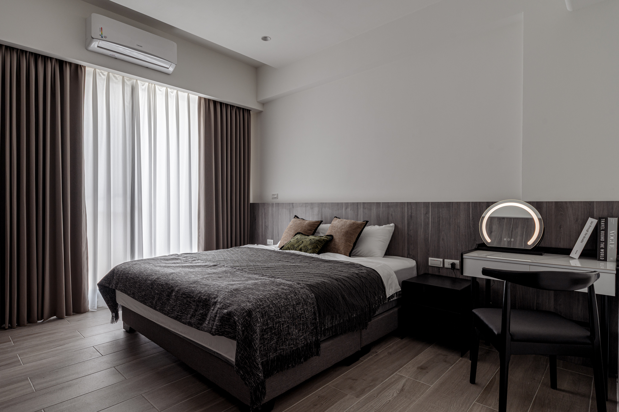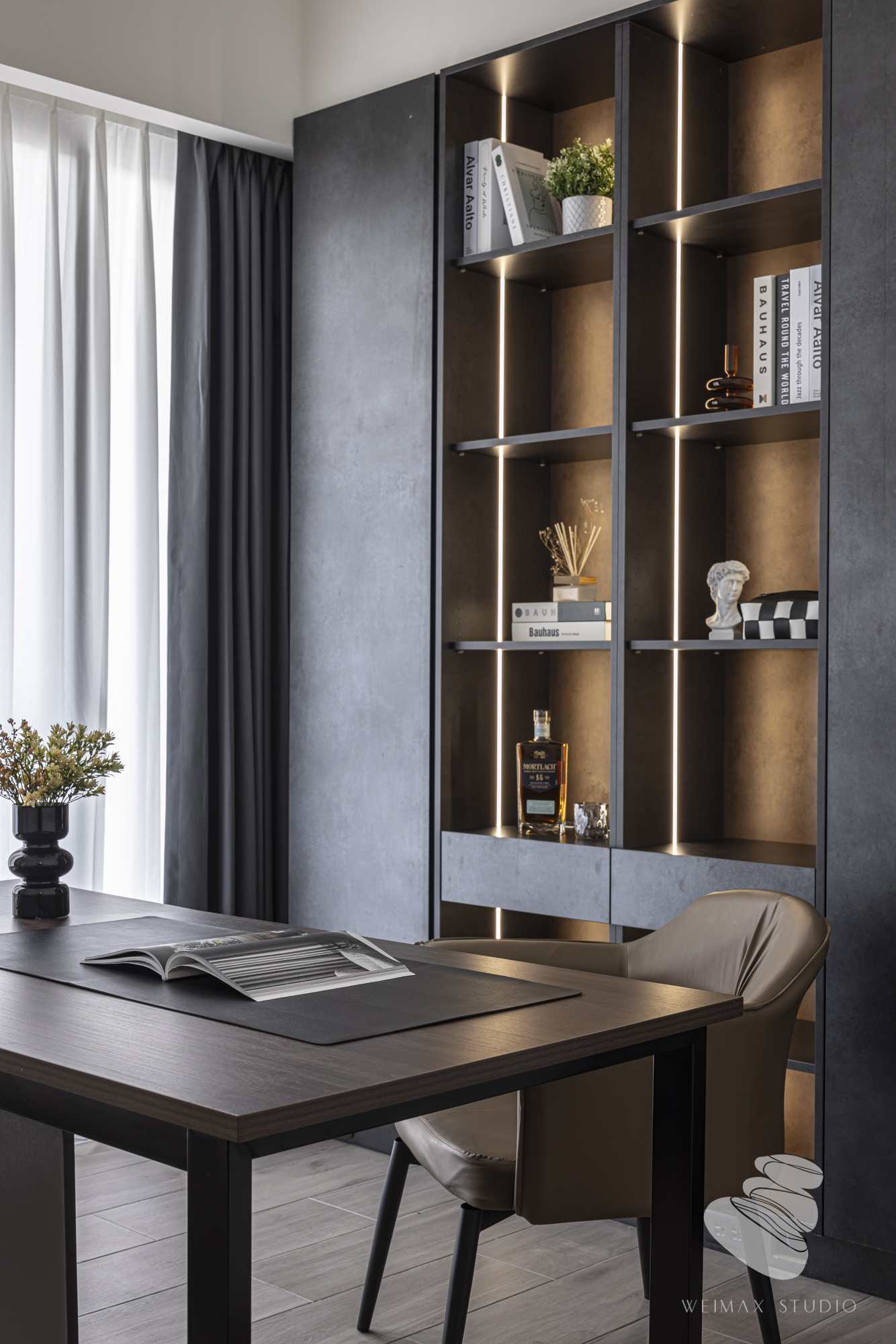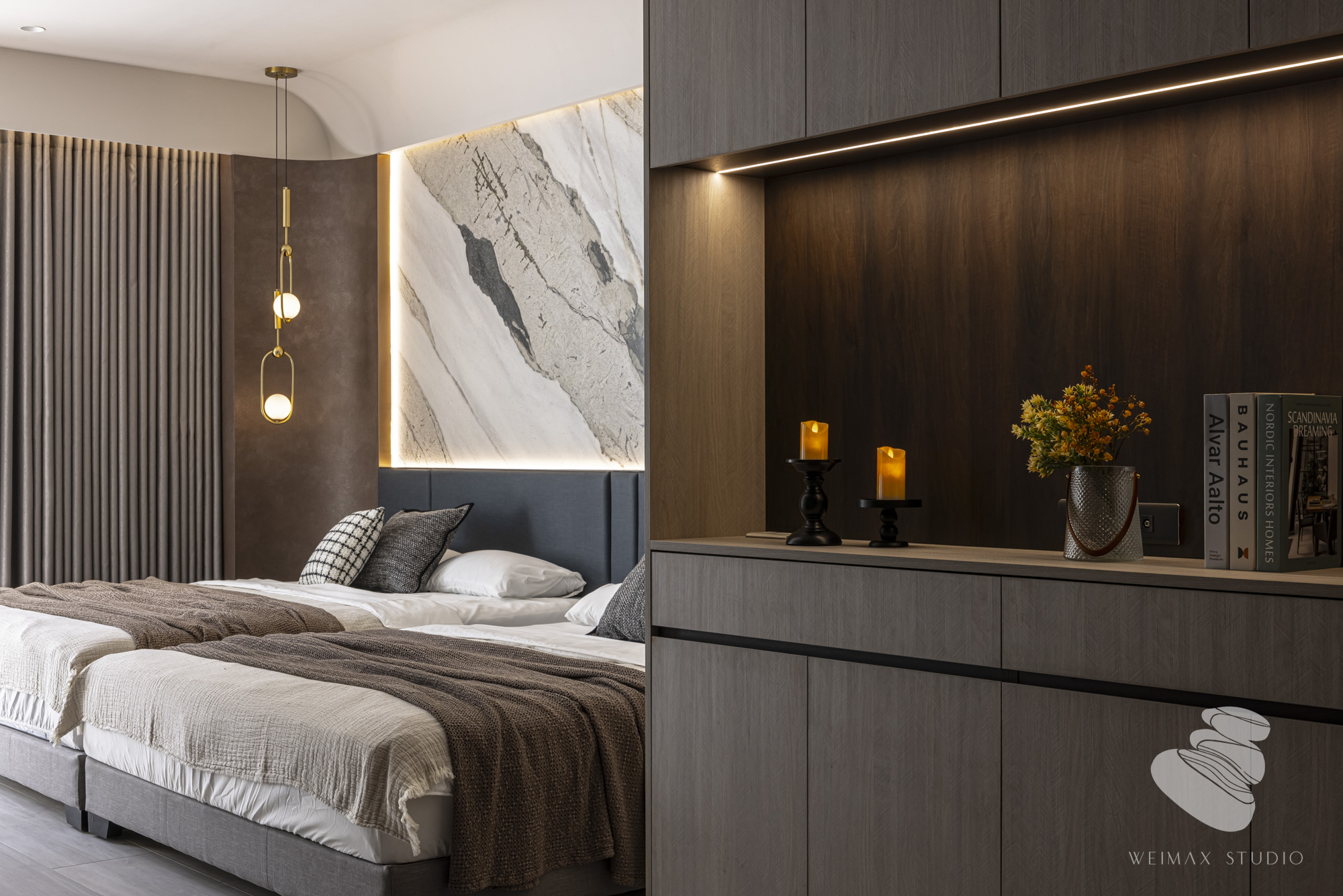 這個客廳以電動智能窗簾系統展現豪華質感,主體採用蛇形無縫燙金遮光絨布搭配造型柔光紗。深色絨布簾在關閉時能有效遮光與隔熱,營造沉穩典雅的氛圍;柔光紗則在白天柔化日光,讓室內保持明亮卻不刺眼。自動化控制提升便利性,能依不同情境自由調整光線。窗簾與大理石電視牆、弧形天花板設計呼應,整體空間展現出現代奢華與高級感。