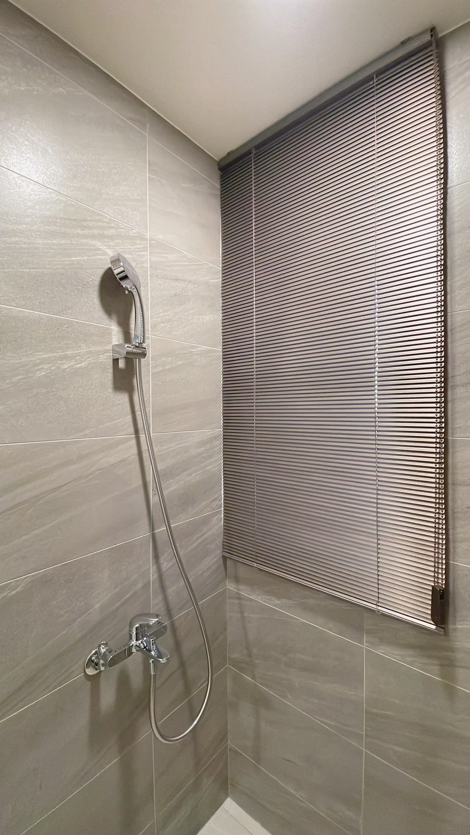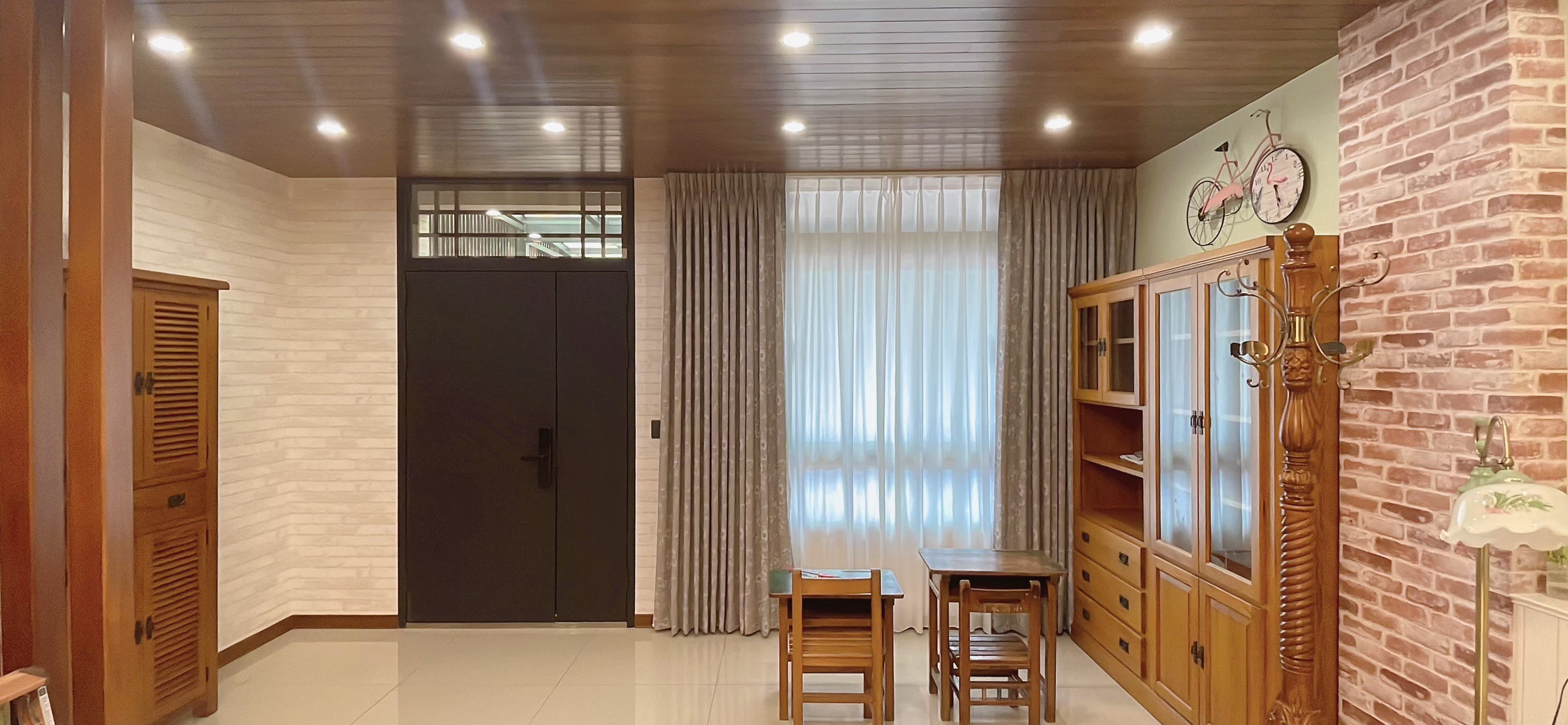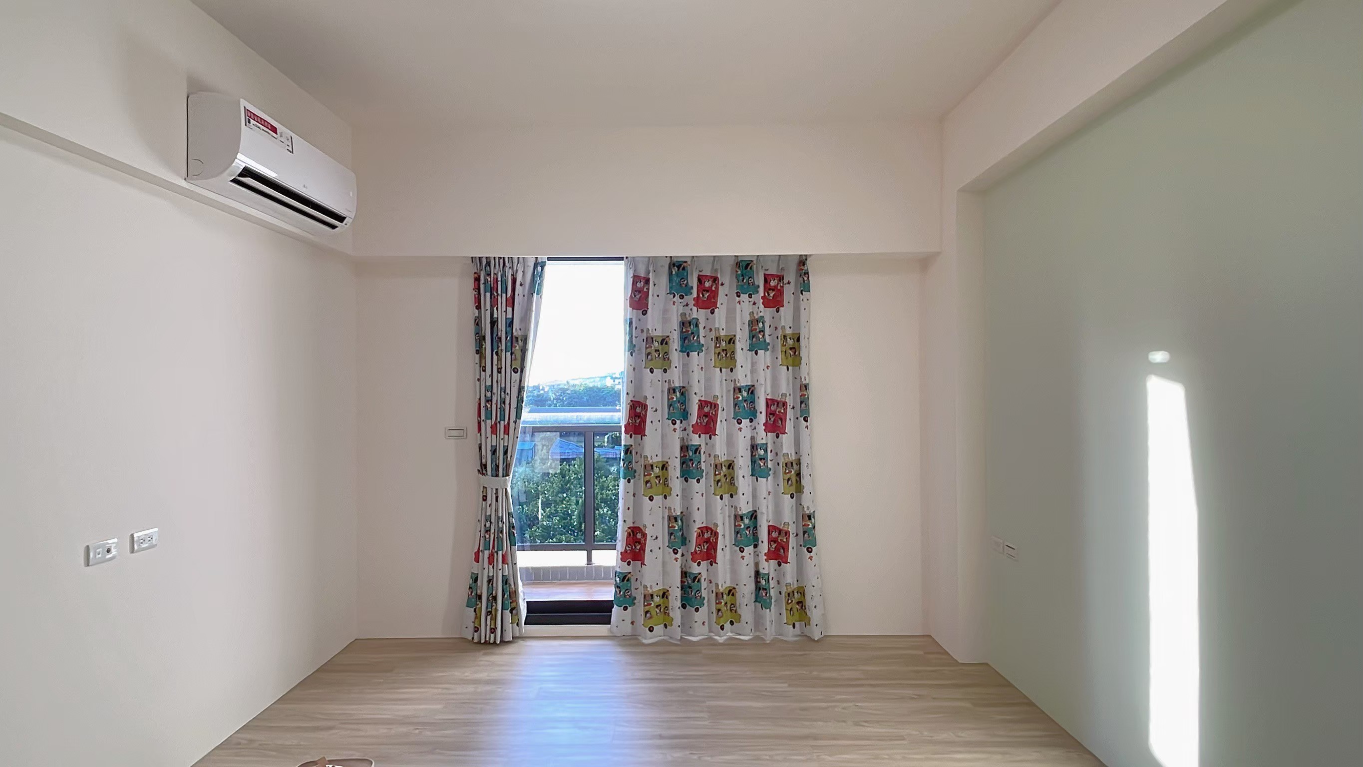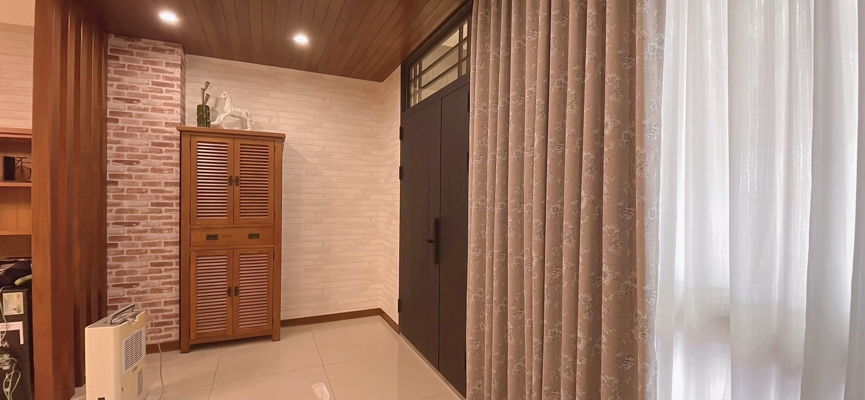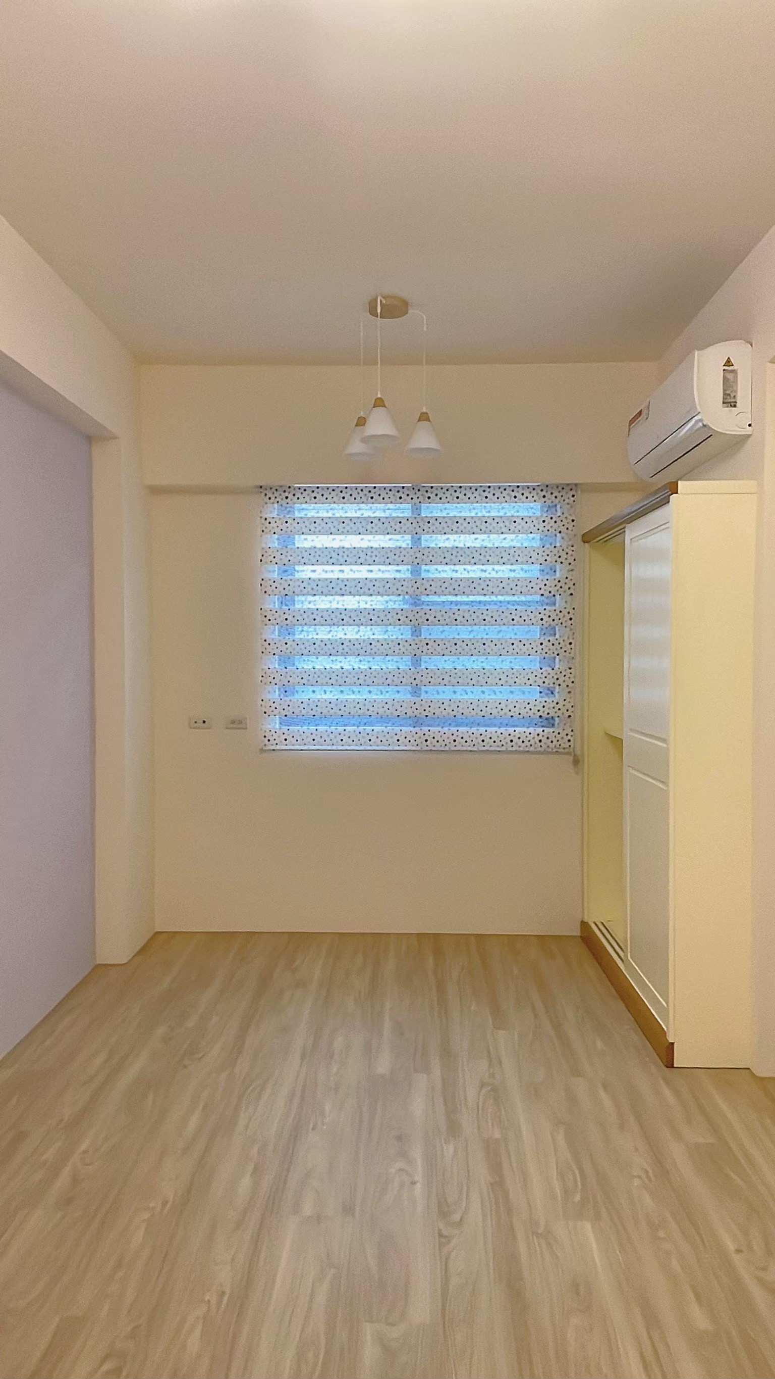 窗簾設計以蛇形摺疊的三合一遮光布簾為主,展現俐落大方的視覺效果。遮光布簾能有效阻隔光線,確保夜晚隱私與良好的睡眠品質;同時透過蛇形摺疊設計,增加窗簾的立體感與律動感,使空間更具層次。搭配粉色牆面與花卉壁紙,柔和中帶有優雅氛圍,讓臥室兼具實用性與浪漫氣息,營造出舒適宜人的休憩環境。