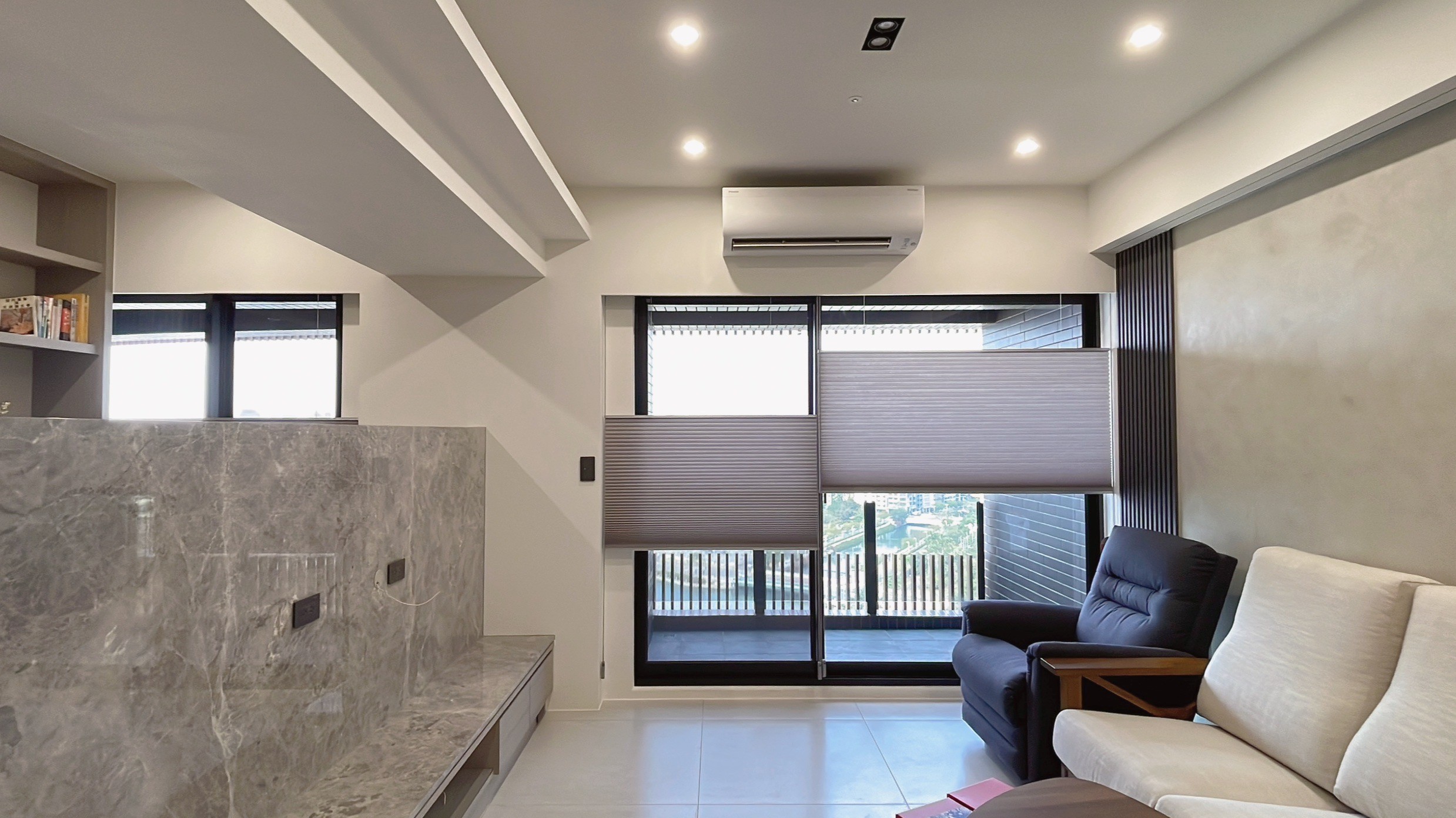 半透光蜂巢簾∣上下開合式∣日系淺灰